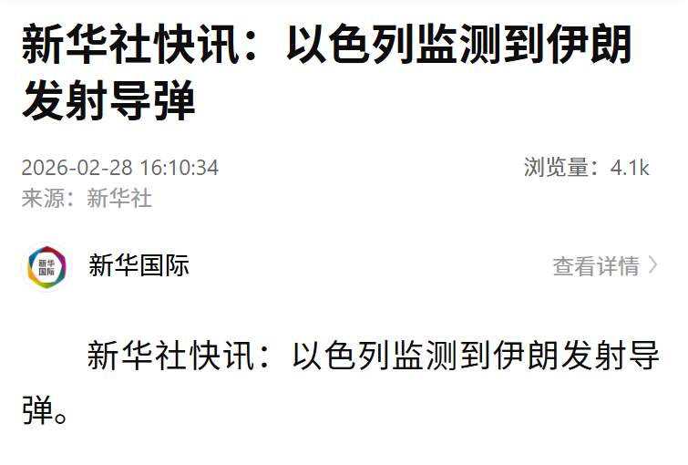 据新华社2月28日消息中国股票配资网股票,以色列监测到伊朗发射导弹。另据央视总台记者获悉,以色列国防军侦测到伊朗向以色列方向发射的导弹,以色列大片地区响起警报。