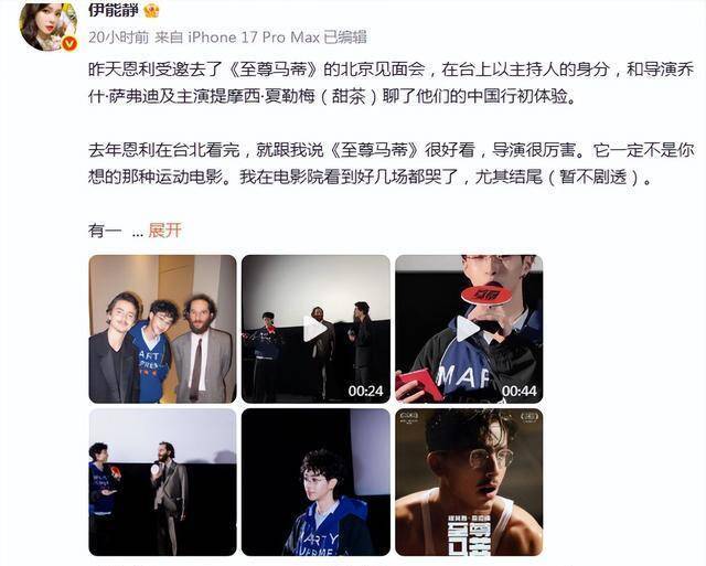 如果说语言是基本功,那恩利在现场展现的“业务能力”才是真正让围观群众收起“看热闹”心态的关键。他的主持风格沉稳松弛,提问节奏精准,明显做足了功课。最让人印象深刻的一个细节是,他捕捉到甜茶在片中饰演的乒乓球手,发球前有一个食指细微的“捻动”动作,并就此提问。这个细节连甜茶本人都感到惊讶,直接回应说:“你是第一个发现这个设计的人!”这一问一答,瞬间拔高了对话的层次,展现了他对电影内容的深度理解和敏锐的观察力,远超出了普通活动主持的范畴。