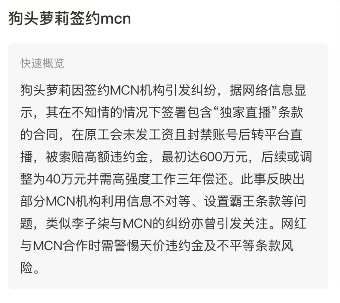 早些年刚入行做主播时,她懵懂无知签了一份MCN机构的合同。