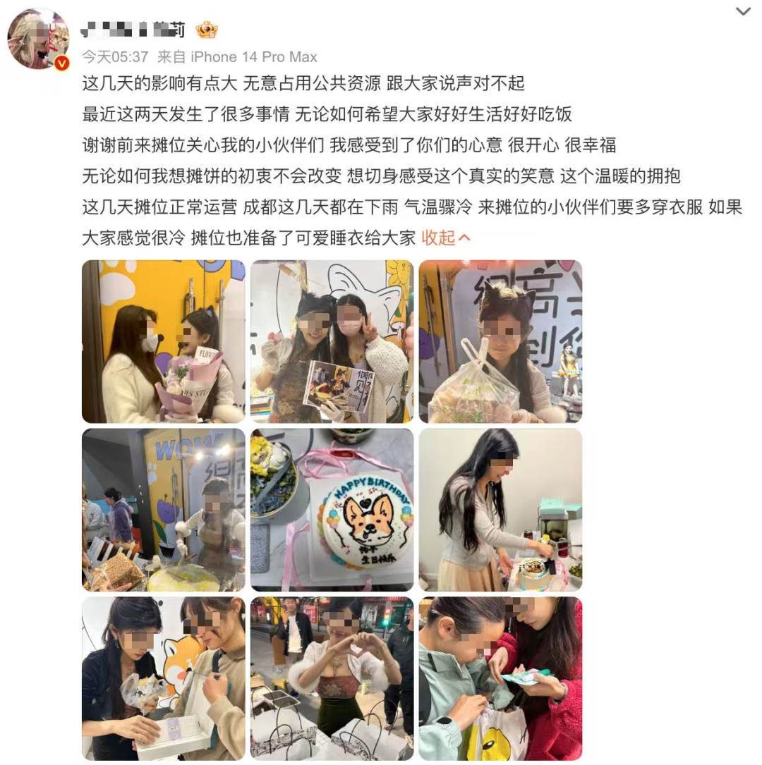 走投无路之下,2023年她宣布退圈,不再做coser,也不再做秀身材的主播,转而选择摆摊卖煎饼。