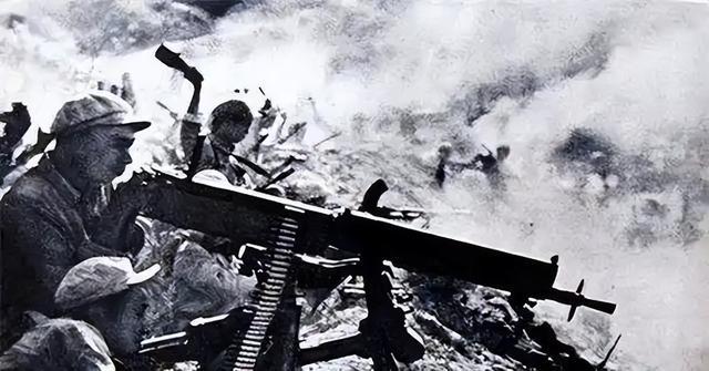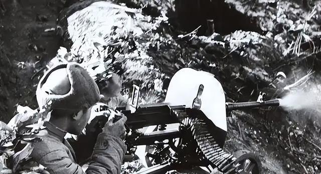 M2重机枪的枪管很快就烫得发红,李德山的手掌被烫出了好几个水泡,但他咬着牙不松手。