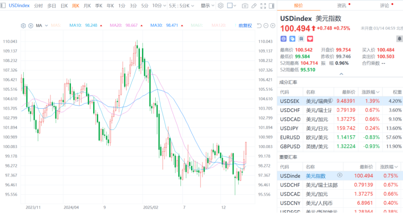 当天,美元指数大涨0.7%,站上99.5;10年期美债收益率跳升7bp至4.05%。